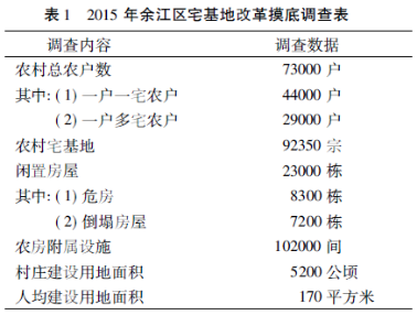 江西省余江区并非是城市近郊或经济发达区域,城镇化率仅为48.1%,远低于全国56%的平均水平。然而,余江农村宅基地改革产生了广泛影响,不仅缓解了宅基地供求矛盾,实现了农民土地财产权利,而且在多个重要领域取得了关键性突破,表现出多目标性改革特征。2015年改革之前,余江农村宅基地的利用现状与全国一致,突出存在三方面尖锐矛盾(表1):