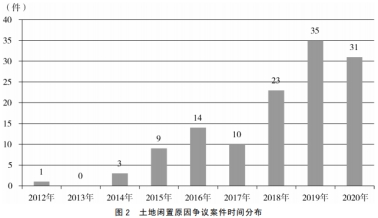 为合理配置土地资源,政府对长期未开发而导致闲置的土地进行收回确有必要,但闲置土地的收回事关相对人的重大经济利益,处置不当可能引发社会问题,因此,政府收回闲置土地并非易事,必须慎重行使闲置土地处置权。从既有研究看,早期研究主要关注闲置土地内涵的界定、闲置土地监管手段的研究等课题。法学界对闲置土地问题的研究首先集中于对国有建设用地使用权收回合同法律性质的认定,包括行政合同、民事合同、混合契约等,同时出现了一些基于案例的闲置土地处置实证研究,并且对闲置土地抵押权人的权利保障也愈发关注。然而,从司法审查角度对“闲置土地处置制度”相关问题进行探讨的研究仍然较少,仅有的成果主要侧重于闲置土地处置制度的规范分析,缺乏对“闲置土地处置制度”司法实践中具体问题的细致刻画,因此有必要对裁判文书进行实证研究。在研究方法与研究对象的选择上,本文拟对涉及“闲置土地”且样本数量较大及审判层级相对较高的裁判文书进行梳理,从而观察“闲置土地处置”司法审查之样貌。
