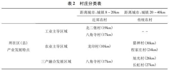 本研究在天津和重庆选择15个村庄对闲置宅基地盘活整治进行调研,从中选择与产业发展用地联系紧密且产业发展基础较好的7个村庄进行比较研究。根据村庄距离城市的距离划分为近郊农村和传统农村;根据村庄所在区(县)产业发展特点划分为工业主导区域、农业主导区域和三产融合发展区域(见表2)。7个村庄在产业基础和资源禀赋上既有相似性,又有不同点,进行比较分析,更能总结出不同特点村庄适宜的闲置宅基地发展乡村产业的模式,结论具有科学性和实用性。