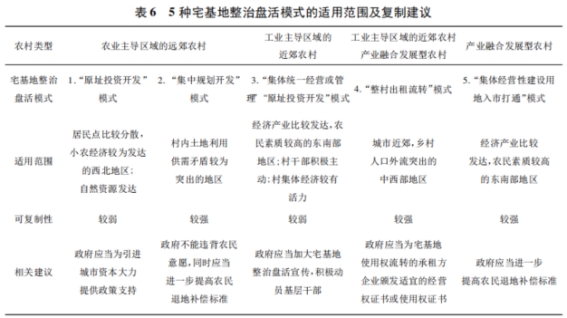 1.经济产业较发达,农民素质较高的东南地区可选择“集体统一经营或管理”和“原址投资开发”模式经济产业比较发达,基础建设较完善,农民素质较高的东南地区可以选择“集体经营性建设用地入市打通”模式,将宅基地整治盘活利用与入市相结合,促进土地集约节约利用,同时这些地区农民外出打工出路较多,反悔以及没有退路的情况较少,产业项目发展前景也较好,但该模式中,政府应当进一步提高农民退地补偿标准;或可选择“集体统一经营或管理”模式,以集体力量带动整村发展,形成集聚效应,政府应当加大宅基地整治盘活宣传,更加注重基层治理,积极动员基层干部。