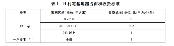 第二,集体合作。其一,有效推进产权制度改革。H村的企业与产业发展离不开集体产权制度改革。H村作为农村宅基地制度改革试点地区,推行宅基地有偿使用制度改革,通过对宅基地超占面积按照不同收费区间(见表1)收取有偿使用费,H村通过此项改革实现集体收入58000余元,第一期有偿使用费收取率达95%。H村通过宅基地有偿使用的倒逼机制以及聚居社区建设的引导作用,实现有偿自愿退出宅基地500余亩,并将这些土地按照“宜耕则耕,宜林则林”进行复垦。2018年,H村有序开展集体经济组织股份合作制改革,通过“清人分类”,按照“尊重历史、兼顾现实、依法依规、程序规范、民主决策、因村制宜、群众认可”的原则,统筹考虑户籍关系、土地承包关系、对集体组织历史贡献、履行村民义务等因素对集体经济组织成员身份进行确认。H村通过“清产核资”,全面清审发包合同,对农户私下口头签订的流转合同督促补签书面合同;通过资源性资产清查,明确开荒地、林地、水面的集体权属,对闲置、低效利用、低价承包的集体资产资源进行重新发包。在“清人分类”“清产核资”的基础上,成立股份合作社形式的农村集体经济组织,为成员配股。成员股由基本股、农龄股、贡献股组成,股权配置按照“量化到人、固化到户”的原则实施静态管理。2019年,农业农村局为H村股份合作社颁发了农村集体经济组织登记证,赋予统一社会信用代码,明确了农村集体经济组织的独立主体地位。H村进行土地制度改革对于推动集体企业合作共建具有重要意义。其二,实现企业导向资源配置。首先,集体协助企业实现规模经营。G公司在五年间陆续流转村民与集体经营的共5000余亩耕地。村集体一方面积极协调农户流转家庭承包地,另一方面将土地制度改革新增的集体所有土地资源用于协助企业发展。例如,将有偿退出后的宅基地复垦为农田,并流转给G公司种植药用作物,部分在产业园区内的房屋交给企业进行工具房、民宿改造等。其次,集体在农村规划上坚持方便群众与服务产业相结合。村集体进行生态聚居区项目,将生态聚居区建设在企业周边,方便企业雇佣村民的同时村民也可享受产业园区良好的生态环境。村集体还将从上级政府争取的项目资金,例如农村公路建设补助资金、移民扶持项目资金、农田水利资金等,部分用于产业园区内的田地平整、沟渠硬化、水库堰塘建设、道路建设等。再次,集体与企业达成合作帮扶协议,坚持产业带动与脱贫帮扶相结合。村里28户贫困户将土地流转给G公司,流转面积168亩,每户每年流转金收入2400余元,公司还通过产业带动、技能培训、提供就业岗位等,为部分贫困户提供就业机会。H村集体在宅基地制度改革基础上,建立农村集体经济组织法人的治理机制、分配机制与监管机制,通过盘活资产、开发资源、产业带动、项目拉动等多种路径,增加集体资产,壮大了农村集体经济。