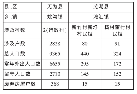 表1 芜湖市“空心村”基本情况