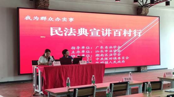 为贯彻落实习近平总书记关于“民法典要实施好,就必须让民法典走到群众身边、走进群众心里”。5月13日上午,在广东省法学会和汕头市法学会的指导和帮助下,潮南区法学会联合潮南区陇田镇委、镇政府在陇田镇东华村文化广场举办了民法典宣讲百村行--东华村专场活动,这是“我为群众办实事”民法典宣讲百村行粤东首站宣讲。陇田镇各村居的支部书记、治保主任、分管自然资源的干部,以及镇政府机关部门的有关同志130多人参加了此次民法典宣讲活动。