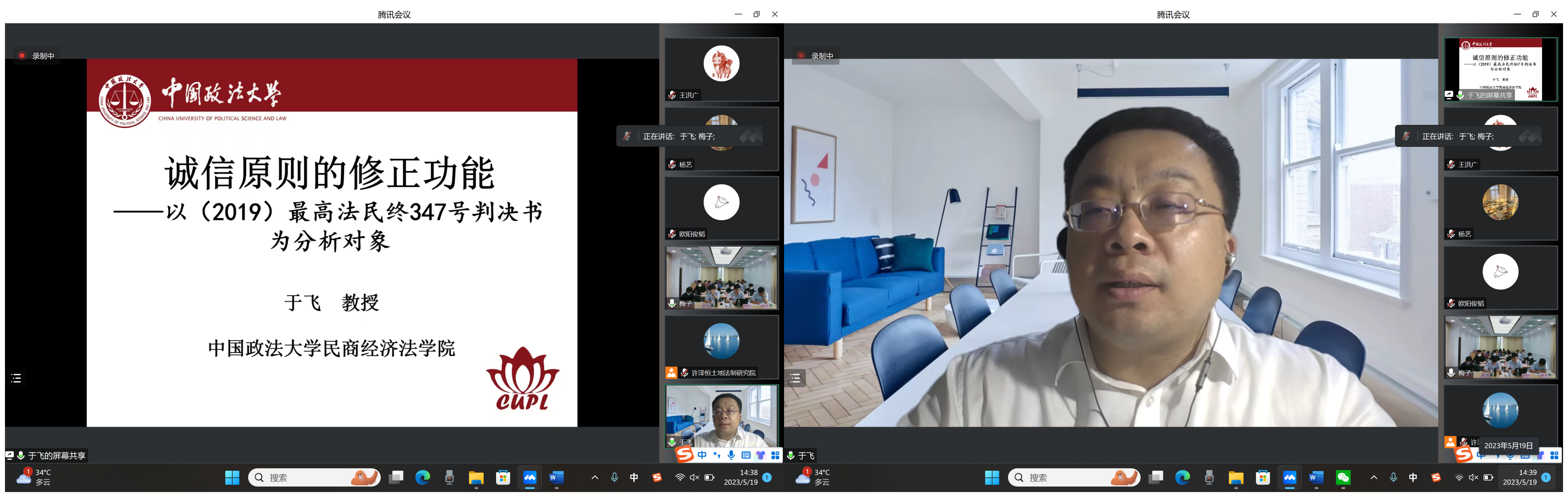 在主讲阶段,于飞教授紧扣2019年最高法民终347号判决书(以下简称“华诚案”)分析诚信原则修正功能之运行机理。于飞教授对“华诚案”的基本案情、裁判要旨进行提炼,归纳判决书的亮点与不足,指出为解决判决书所存在的逻辑跳跃、权衡不足问题,应当要有一个方法论工具和充分展示权衡过程。一方面,以立法目的为边界,目的性限缩与法律修正在发生原因、功能定位和法官论证义务上存在区别,该案中法院裁判理由已超出相关规范立法目的,属基于诚信原则的法律修正。另一方面,于飞教授围绕具体案情剖析实现诚信原则的重要性、支持规则适用的实质理由,对原则与规则的实质理由进行权衡,并结合规则的形式理由、法律的一般预防功能,论证实现原则的重要性超过支持适用规则的实质理由与形式理由之和。最后,于飞教授总结出“华诚案”诚信原则修正功能运用的思维五步法。