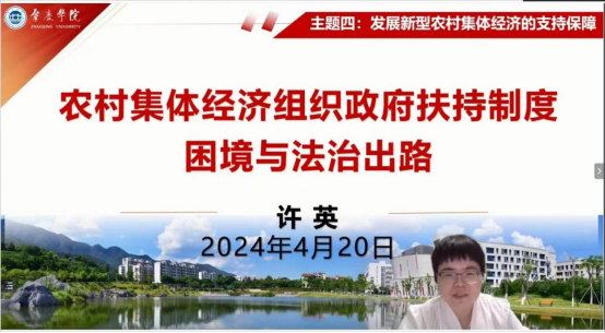 许英教授以“农村集体经济组织政府扶持制度困境与法治出路”为主题,从政府扶持制度的功能定位出发,分析政府扶持制度的缺陷与不足,进而提出政府扶持制度的法治路径。