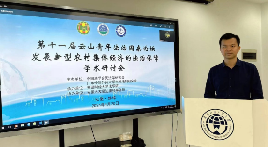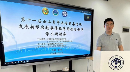 4月20日,由中国法学会民法学研究会、广东外语外贸大学伟德国际1946,Bevictor伟德主办,安徽财经大学法学院承办,安徽大友昱达律师事务所协办的第十一届云山青年法治圆桌论坛暨“发展新型农村集体经济的法治保障”学术研讨会在安徽蚌埠举行。来自中国政法大学、中国农业大学、中南财经政法大学、吉林大学、西北政法大学、广东外语外贸大学、南开大学、苏州大学、南京师范大学、天津大学、郑州大学、内蒙古大学、河南农业大学、燕山大学、内蒙古民族大学、西北民族大学、山东政法学院、肇庆学院、江西飞行学院、安徽农业大学、安徽财经大学、安徽大友昱达律师事务所等20多家单位近60名专家学者参加论坛。