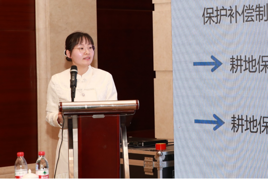 任怡多讲师以“论耕地保护补偿制度的法律构建”为题,从耕地保护补偿的概念体系混乱、法理基础不明切入,阐释耕地保护补偿制度的法律内涵、法理基础和法律构造,认为应围绕补偿主体、受偿主体、补偿标准和补偿方式等要素分别构建纵向耕地保护补偿制度和横向耕地保护补偿制度。