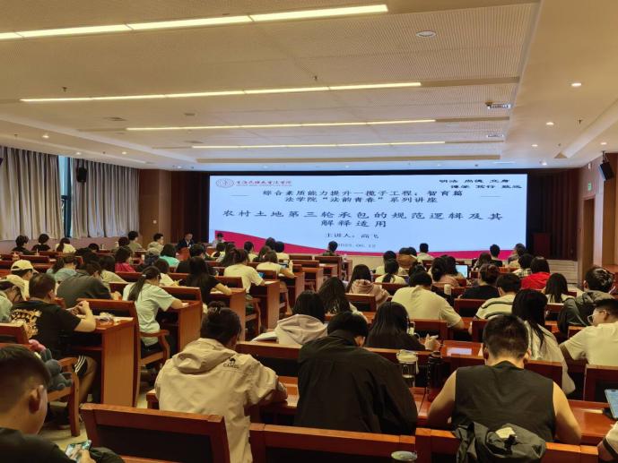 在提问环节中,参会学生围绕土地经营权、农户土地分配等主题踊跃提问,高飞教授耐心答疑解惑,使参会学生进一步深化了对土地法的理解,现场讨论热烈,气氛浓厚。