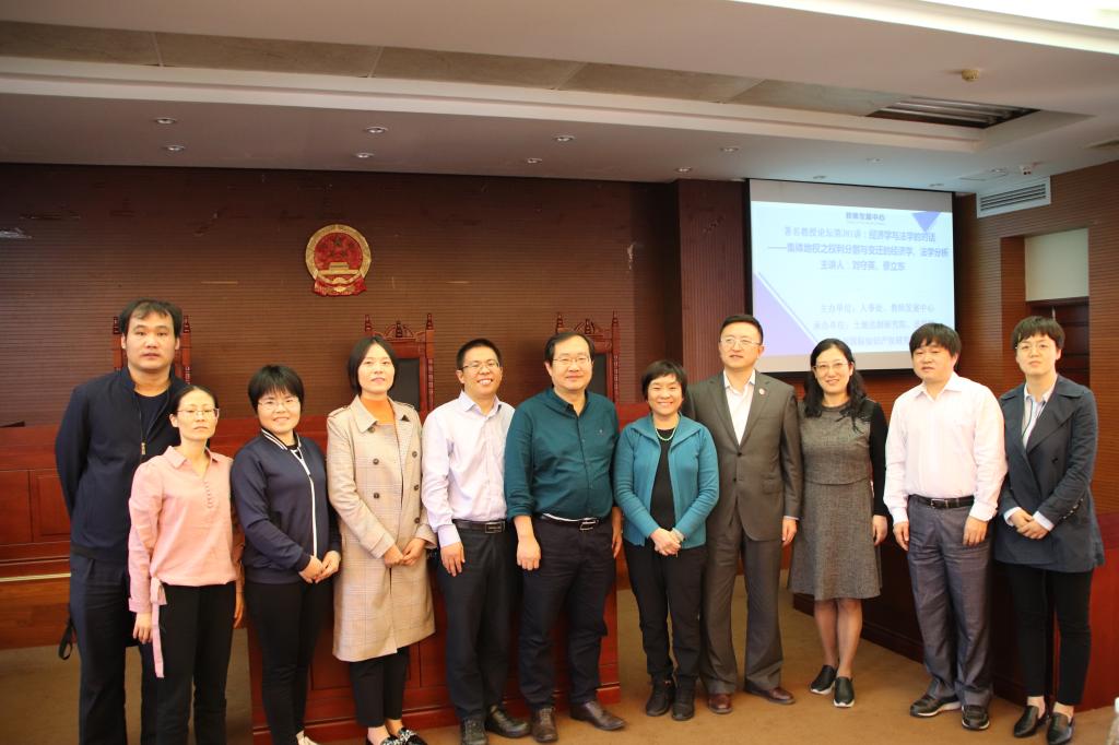 2018年11月19日上午,由广东外语外贸大学人事处、教师发展中心主办,伟德国际1946,Bevictor伟德、法学院、华南国际知识产权研究院联合承办的著名教授论坛第381讲“经济学与法学的对话——集体地权之权利分割与变迁的经济学、法学分析”在广东外语外贸大学南校区实验楼模拟法庭开讲。