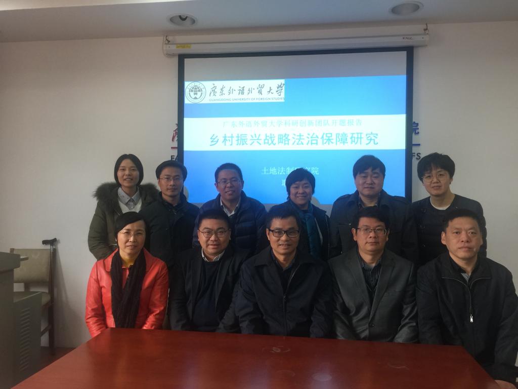 2018年12月13日,广东外语外贸大学2018年度科研创新团队项目“乡村振兴战略法治保障研究”开题报告会在北校区七教412室成功举行。